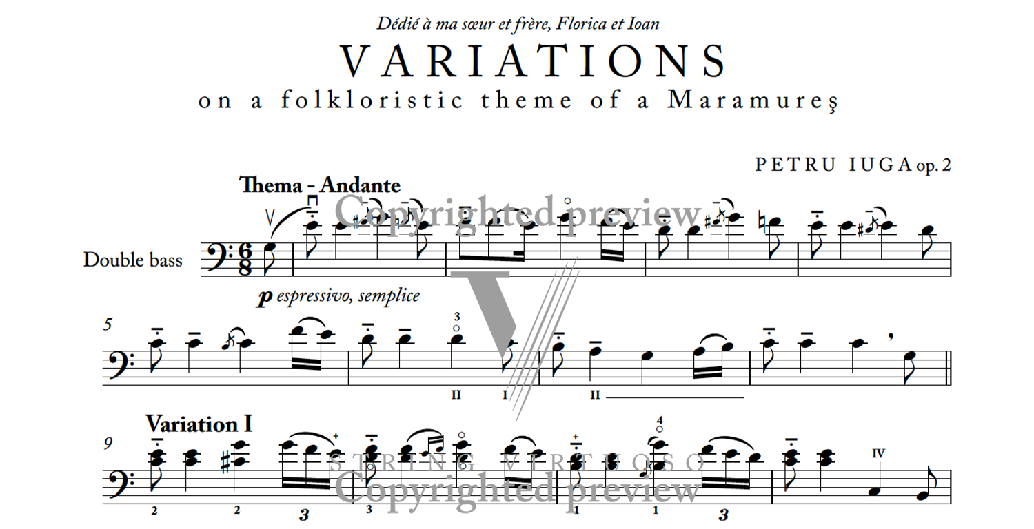 This edition of Variations on a Folkloristic Theme of the Maramureş, is arranged for double bass.